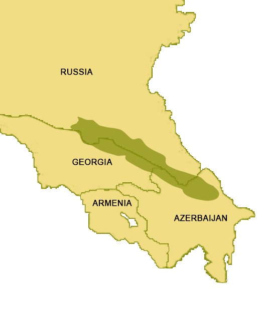 Eastern part of the Caucasus Mountains east of Mt. Dykhtau. Habitat is usually in open, precipitous terrain at higher elevations as high as 12,000 feet, but may also be found lower down in thick forest. Descends to lower elevations in winter to escape heavy snow.