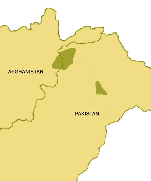 Afghanistan: Laghman Province and the Bashgul River area. Pakistan: Chitral District, along the Kunar River from Shogore to Arandu on the west bank and to Drosh on the east bank, and up its tributary the Matuj River as far as Barenis; Dir District, along the upper Panjkora River; and Swat District on the cliffs east ofhamsberi, Kaj-i-Nag, and Pir Panjal ranges.